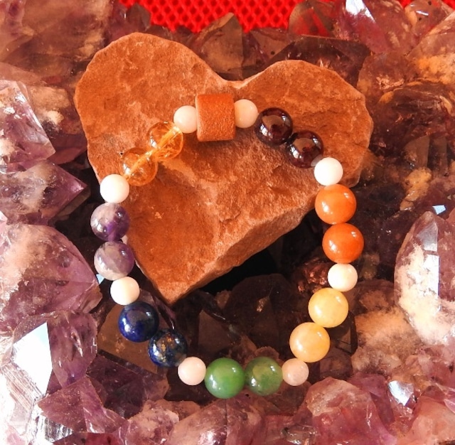セドナレッドロックが入ってパワフル! セドナパワーでチャクラを整えていくブレスレット 各チャクラカラーストーンを3つずつで守護パワーUP セドナのパワフルなレッドロック(赤岩)のセドナストーンを使い、チャクラカラーのストーンで製作した、あなたのチャクラを整えるブレスレットです。 各チャクラがセドナのボルテックスエネルギーで活性化していき、そのときに必要なチャクラパワーがあなたをサポートします。 メイン作用は、エネルギーがUPし、活力的に創造的に行動していけるサポート